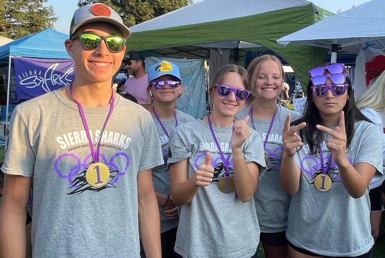 Friday rocked! Shark athletes broke 2 team records and just about every Shark went a best time. It was awe inspiring! Today (Saturday) started with the same energy. I will try to tell you some of the best highlights later this week. Imagine though watching heat after heat with sharks just dropping 3, 4, 8 seconds out of the blue. We even took first and second a few times!