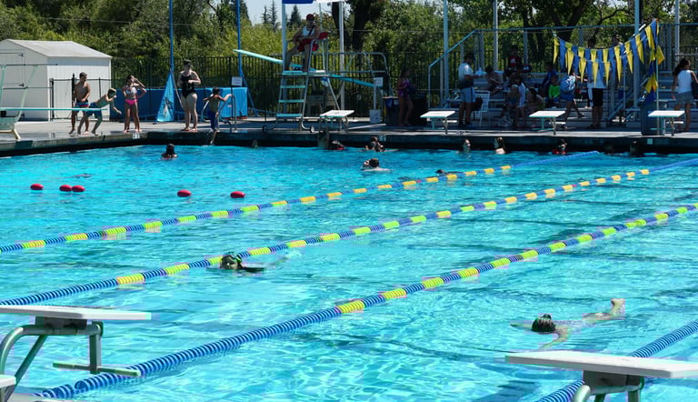 - Visiting team setup is on the grass outside gated area on the east side of pool.
